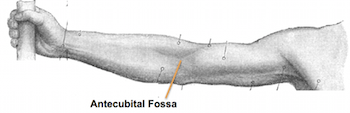 1. اطلب من المريض أن يمد ذراعه على الطاولة، أو على ذراع كرسي السحب.