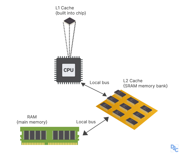 في بعض التعليمات، قد تحتاج وحدة المعالجة المركزية (CPU) إلى الوصول إلى الذاكرة لجلب البيانات أو تخزين النتائج