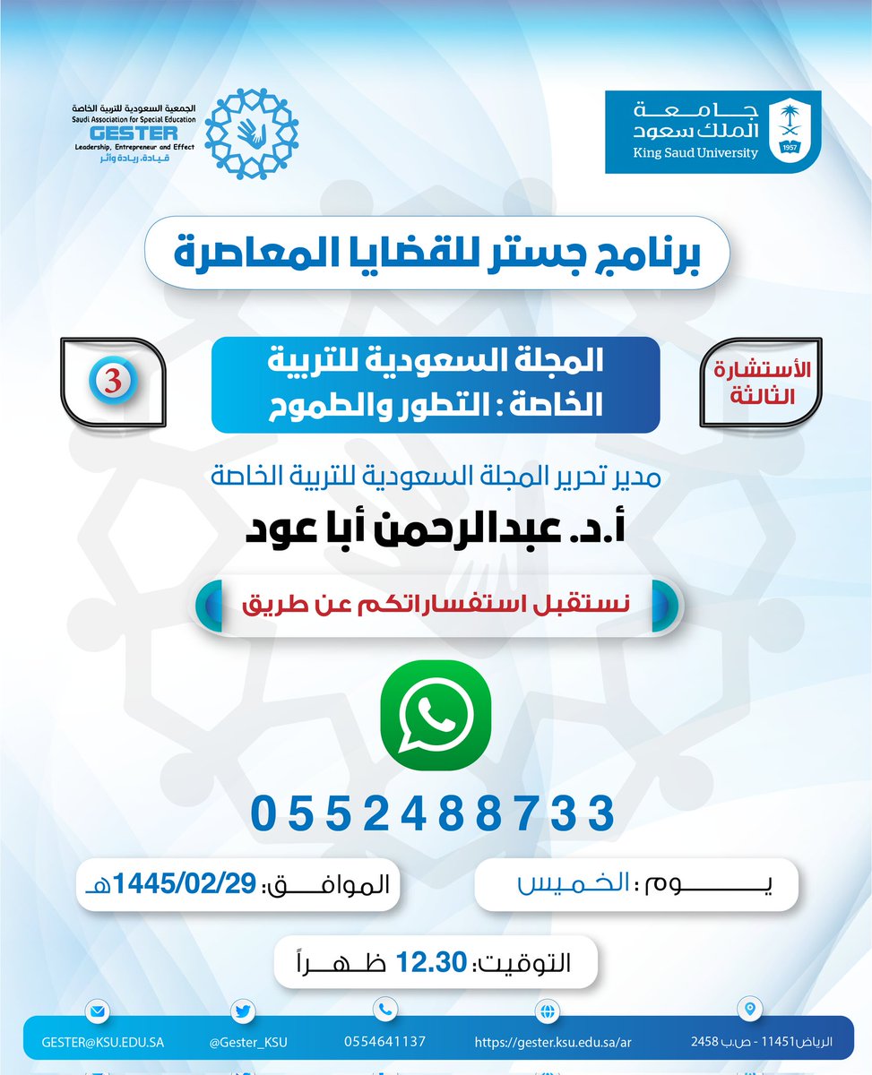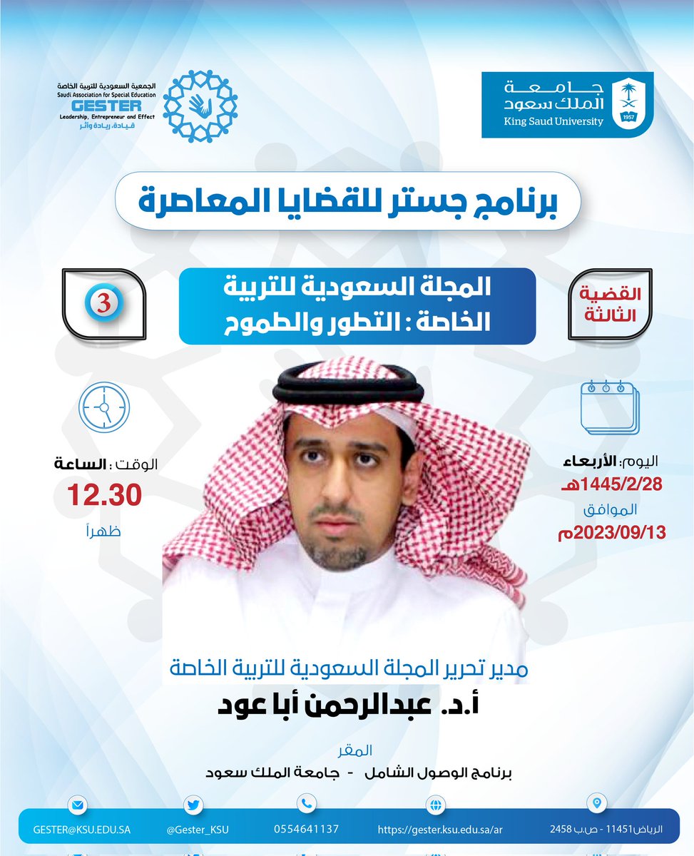 #القضية_الثالثة من برنامج جستر للقضايا المعاصرة بعنوان:"المجلة السعودية للتربية الخاصة:التطور والطموح"