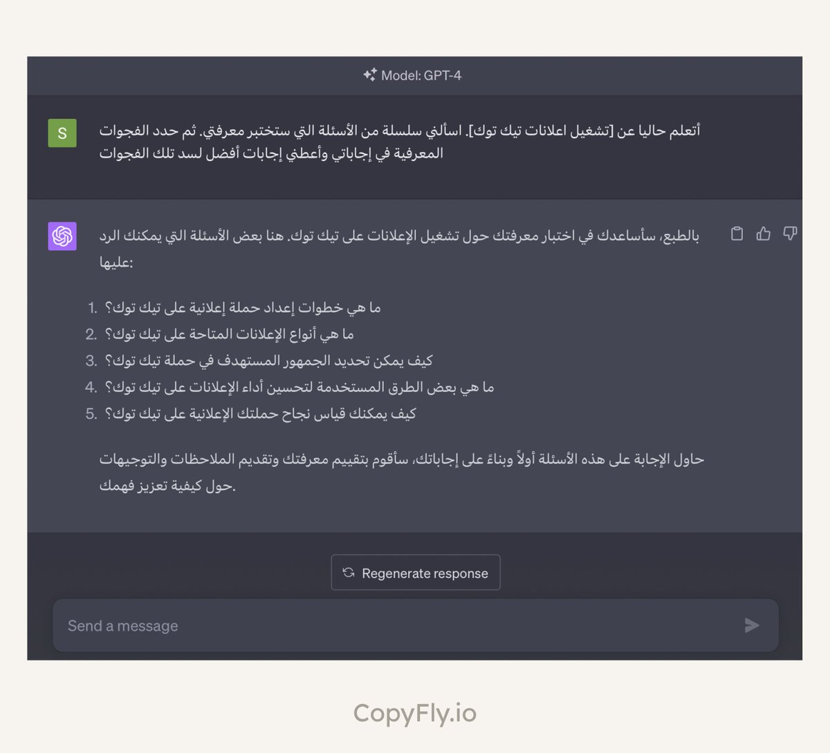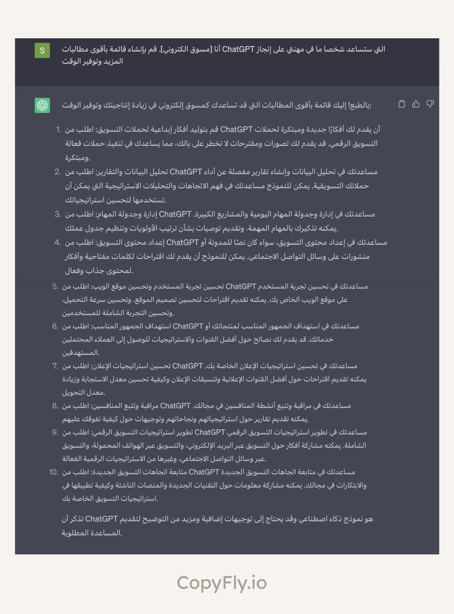 اجعله ينتقد المحتوى. يمكنك أن تطلب منه إجراء تغييرات على هذه النصوص أيضا.