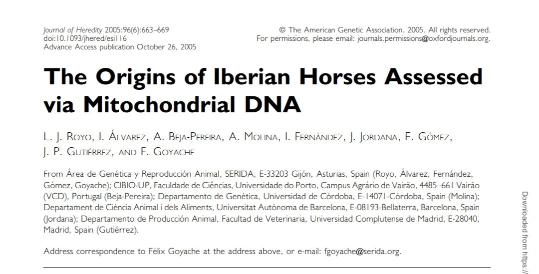 ▪︎اليوم سنضرب هذه الخرافات في مقتل، و السبب بسيط هو الدراسة التي اقيمت على هذه الخيول #الاندلسية التي قالوا انها مزيج عربي لتحسين نسل الخيل الايبيري ، السؤال هو ماذا تخبرنا الدراسة الجينية عن اصول هذا الخيل و من ساهم في تكوينه !