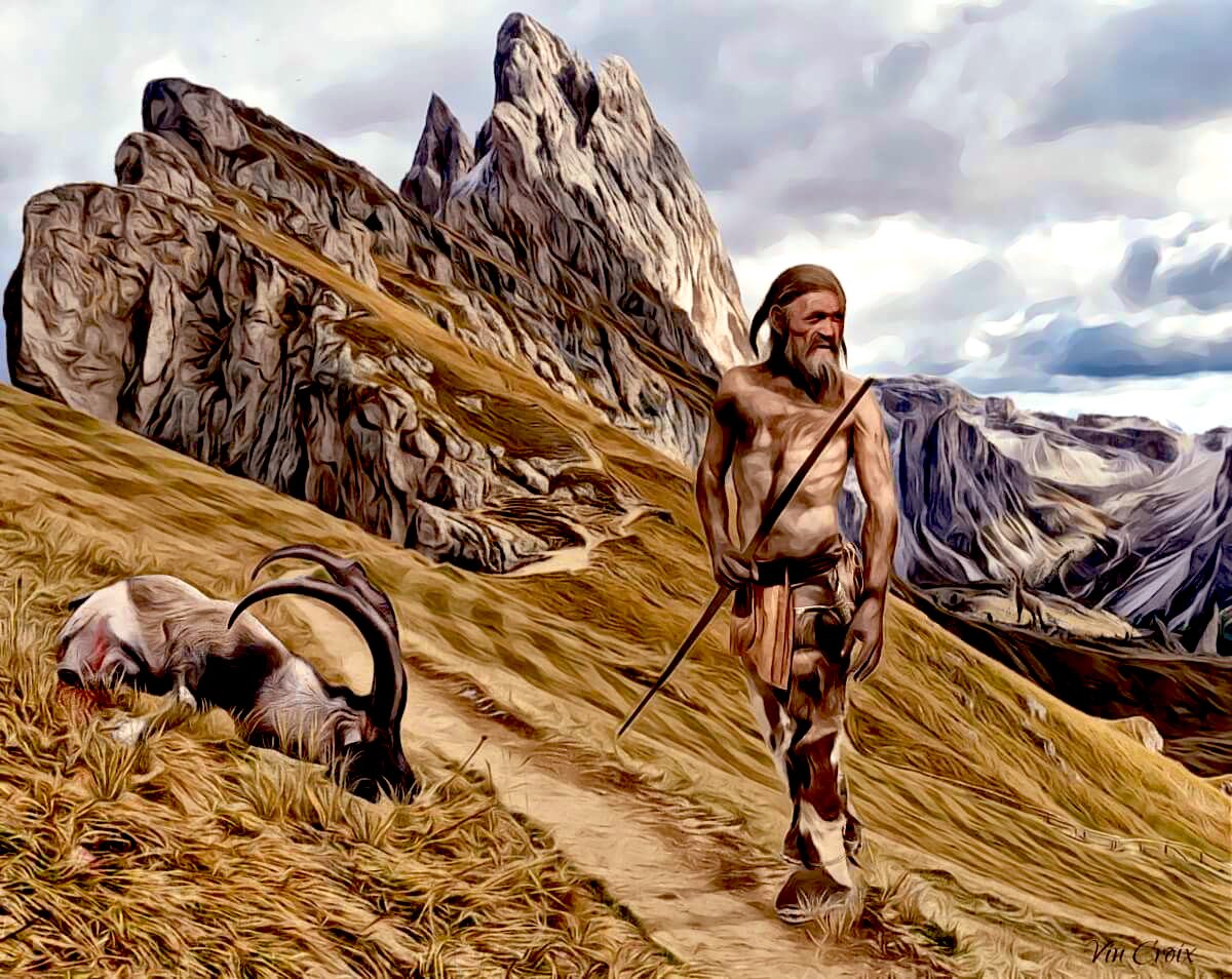 كانت عضلات أقدامه متطورة وقوية بدرجة تقارب المصارع الأولومبي في يومنا هذا، مما حدا بالعلماء إلى التنبؤ بأنه كان صياداً متمرساً في الجبال في ذلك الزمن.