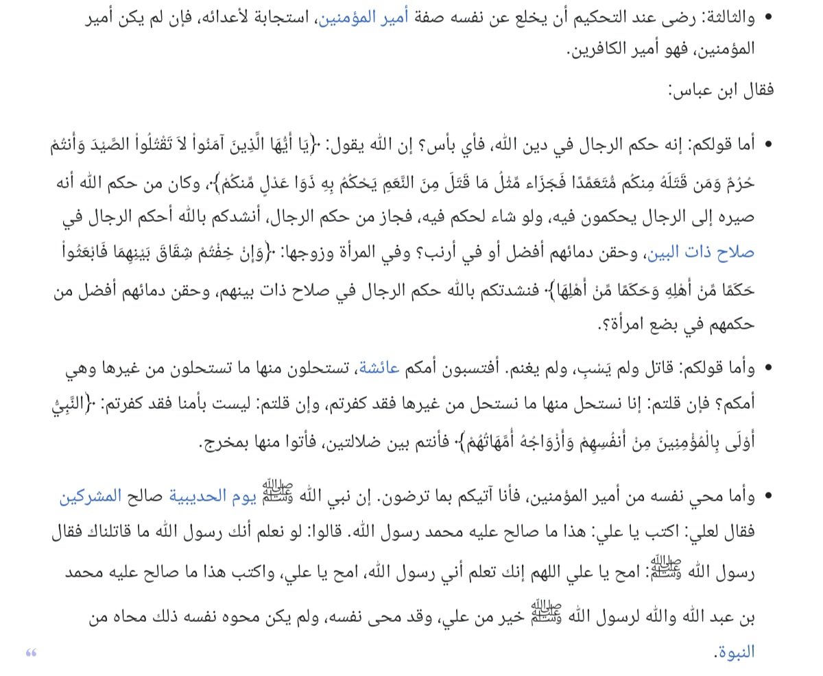 سألهم ابن عباس: ماذا تنقمون من علي؟ قالوا: ننقم منه ثلاثًا.