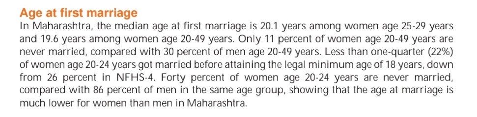२) लग्नाचं सरासरी वय ~ २० वर्ष आहे..पण २०-४९ वर्ष वयोगटातील