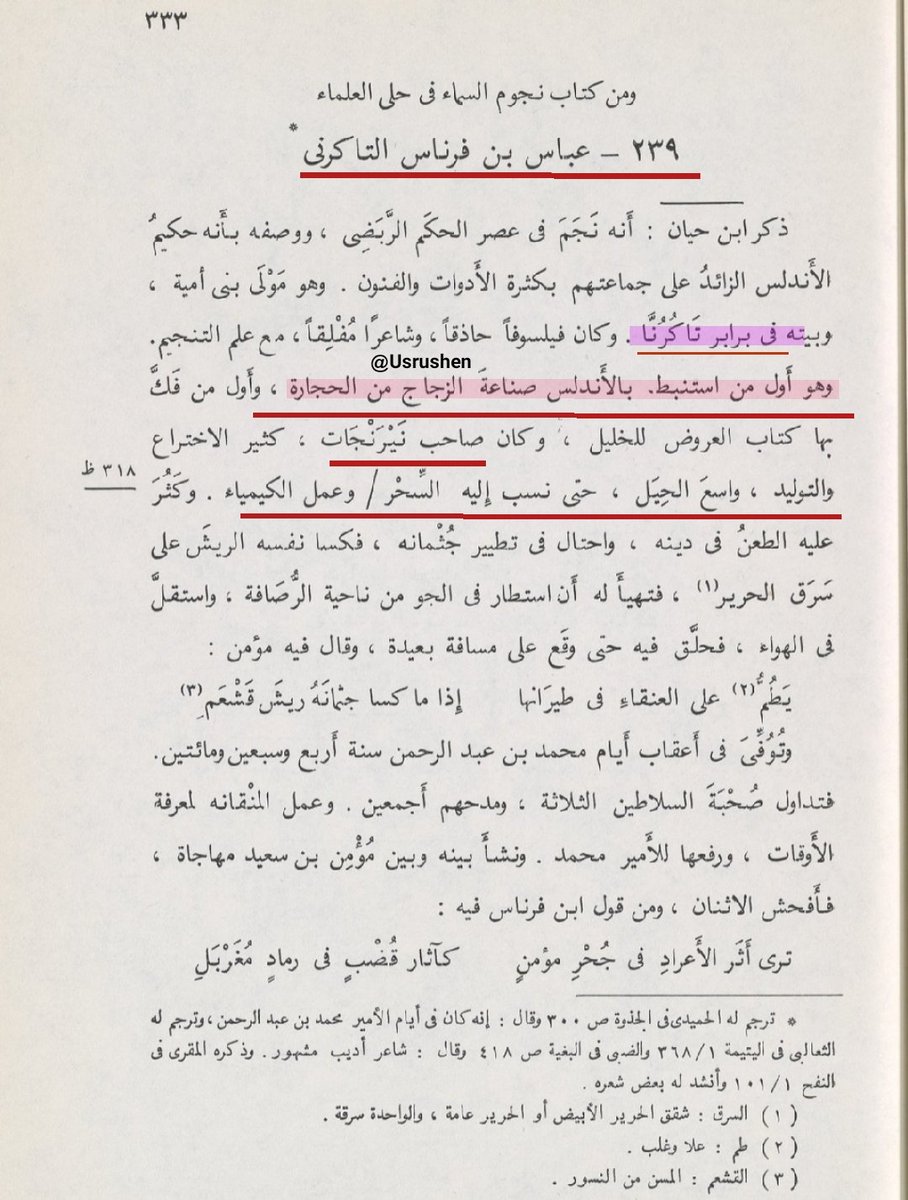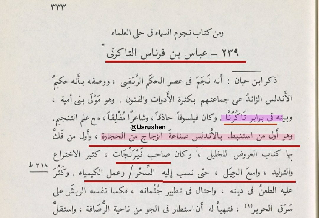 ▪︎ثم يتابع صاحب حلى المغرب فيقول ""و كان فيلسوفا حاشقا، و شاعرا مفلقا، مع علم التنجيم(الأمازيغ برعو في هذا العلم ) ، و هو #أول من استنبط بالاندلس #صناعة_الزجاج من الحجارة ، و #اول من فك بها كتاب العروض للخليل، و كان صاحب نيرنجات ، #كثير_الإختراع و التوليد واسع الحيل "" !