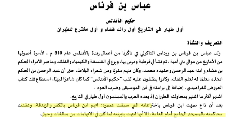 ▪︎فقد بلغت #عبقرية العالم الامازيغي عباس ابن فرناس ان ببيته غرفة لنموذج محاكاة للسماء يؤىفيها الزائرون النجوم و السحاب و الصواعق و البرق (تكنولوجيا متقدمة في عصره) ، و كان الامازيغي بن فرناس من مترجمي علوم اليونان الى العربية و بالتالي ساهم في نقل علوم اليونان و فك شيفرتها.