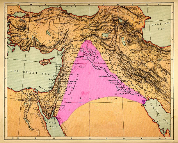 ومن ناحية آشوريَّة وهم أهل منطقة ليسوا كالرومان فقد نقشوا أول وجود للعرب بهذه المنطقة بتحالف (12) ملك في قرقر عام (853 ق.م)