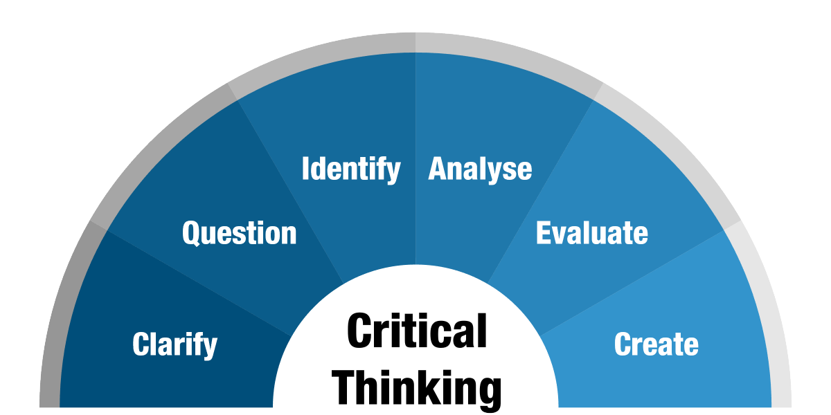 وبشكل اكثر دقه التفكير الناقد كله يعتمد على طرح الاسئله ليس اي سؤال انما السؤال الصحيح او التساؤل الصحيح لبناء وفهم وحل مشكله او مناقشتها.