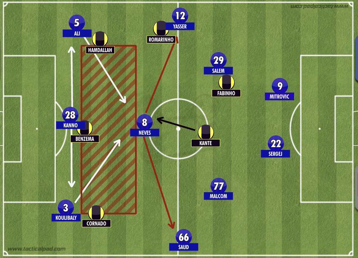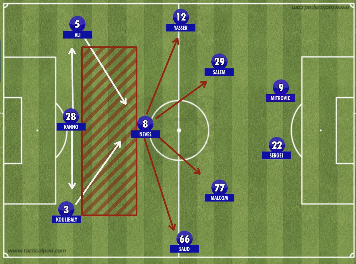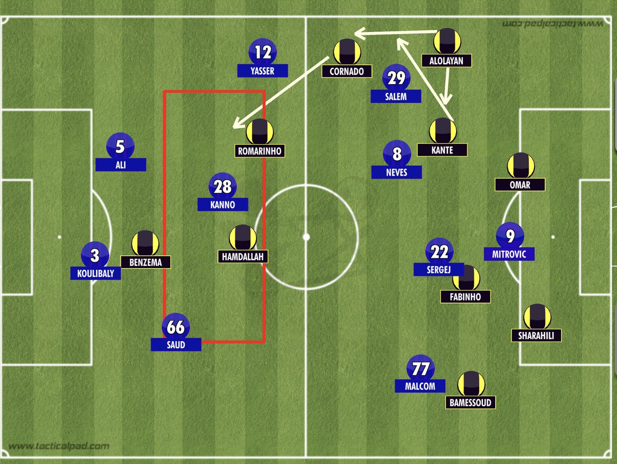 فكرة نونو الهجومية هو استهداف المساحات خلف دفاع #الهلال بالكرات القطرية من عرض الملعب لعمق الملعب..