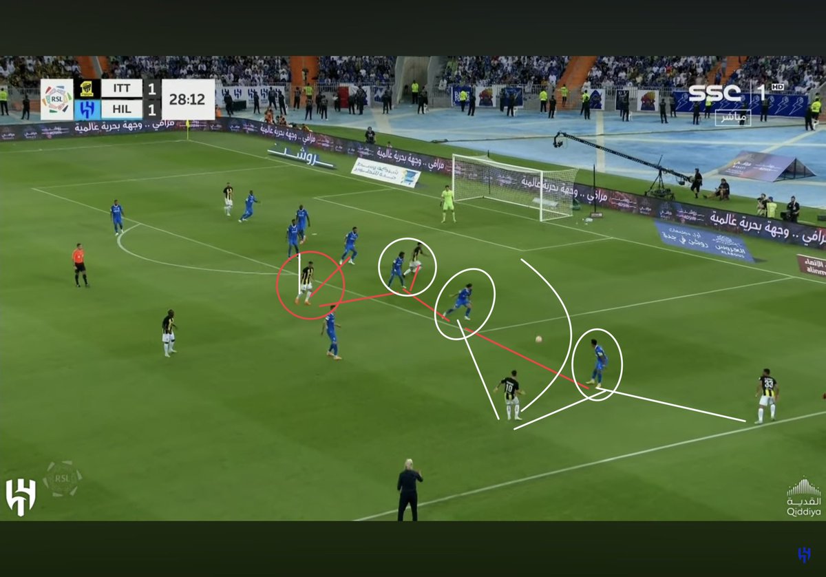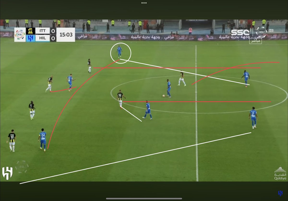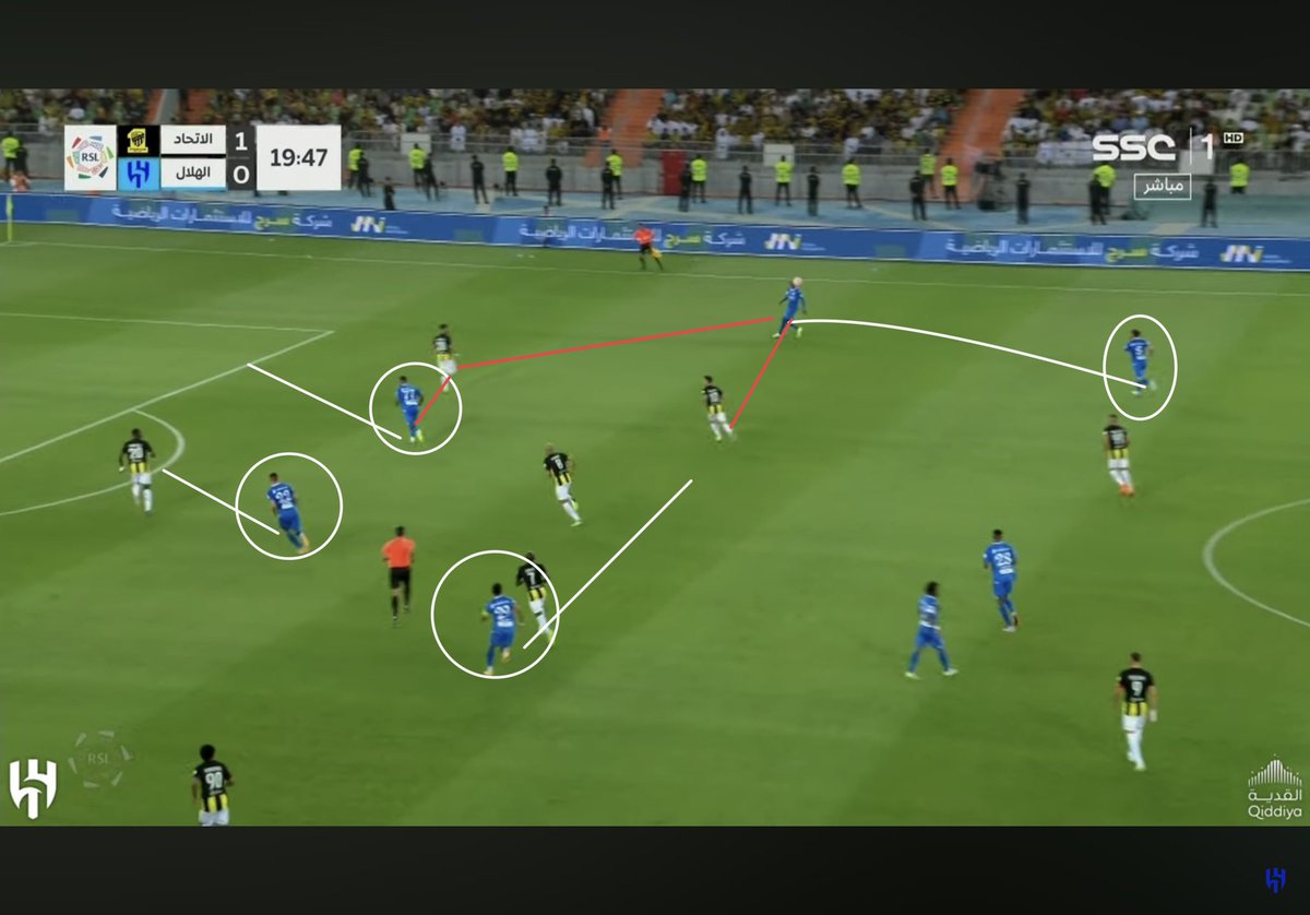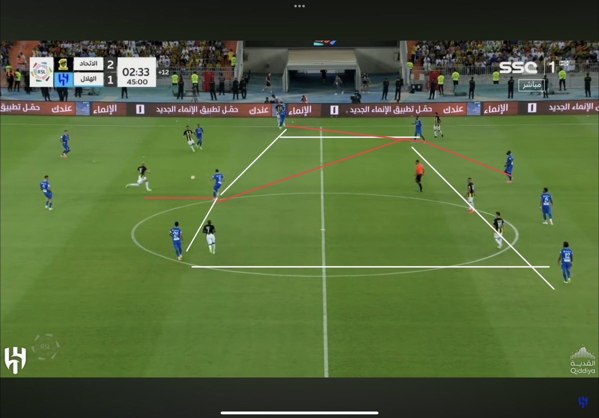 حالة وحيدة فقط بالشوط الأول كان #الهلال فيها في موقف مثالي وشاهدنا أفكار جيسوس وهي كانت لقطة الهدف الأول على الرغم من اننا كنا نحتاج لاعب سوبر بامكانيات ميترو لانهاء الكورة بهذا الشكل..