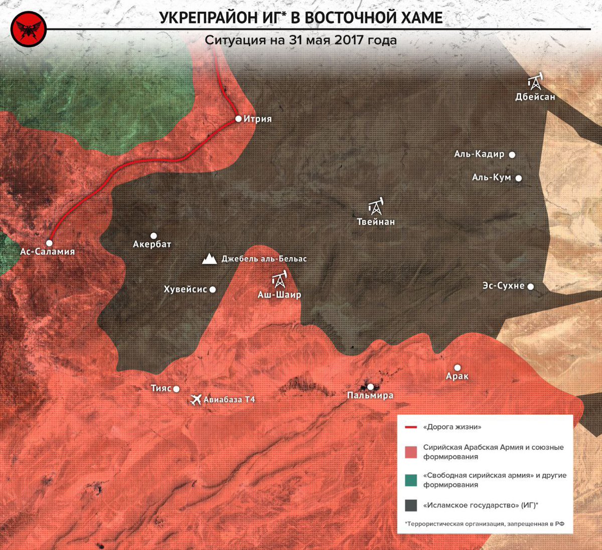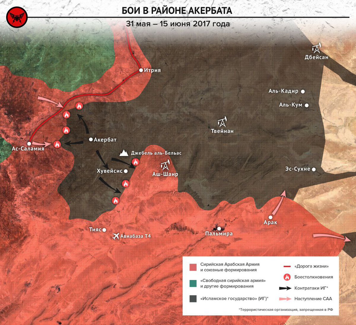 3/ e dagli oleodotti provenienti dall'area di Palmira solo da decine di km. Operando da Akerbat, i jihadisti avrebbero potuto controllare gli oleodotti, le principali città della Siria e le strade che da Homs e Hama portano più a Nord ad Aleppo.
