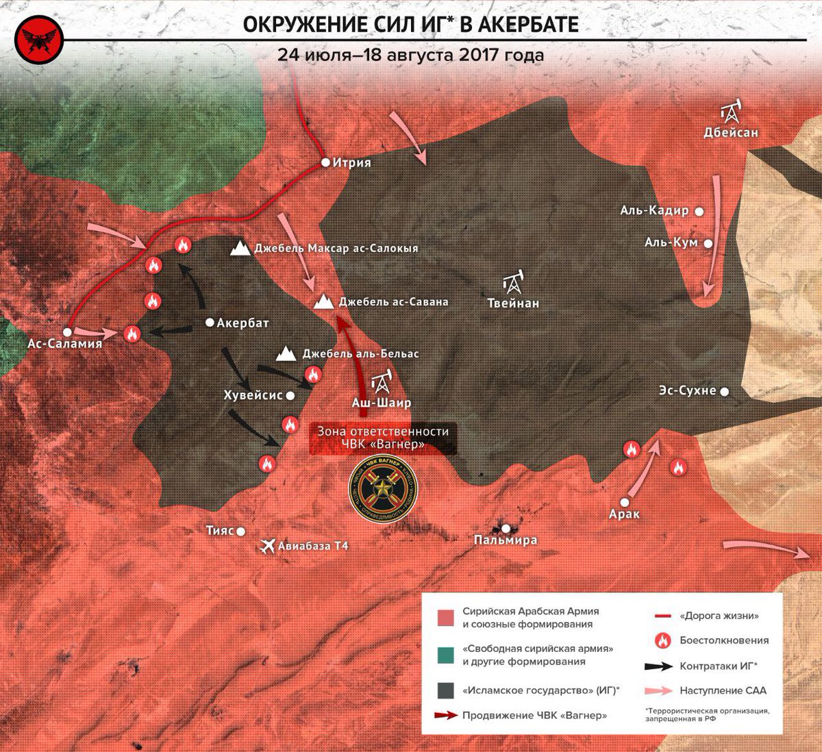 14/ All'inizio di settembre 2017, combattenti del Gruppo Wagner presero d'assalto la città di Akerbat a Nord-Ovest di Palmira.