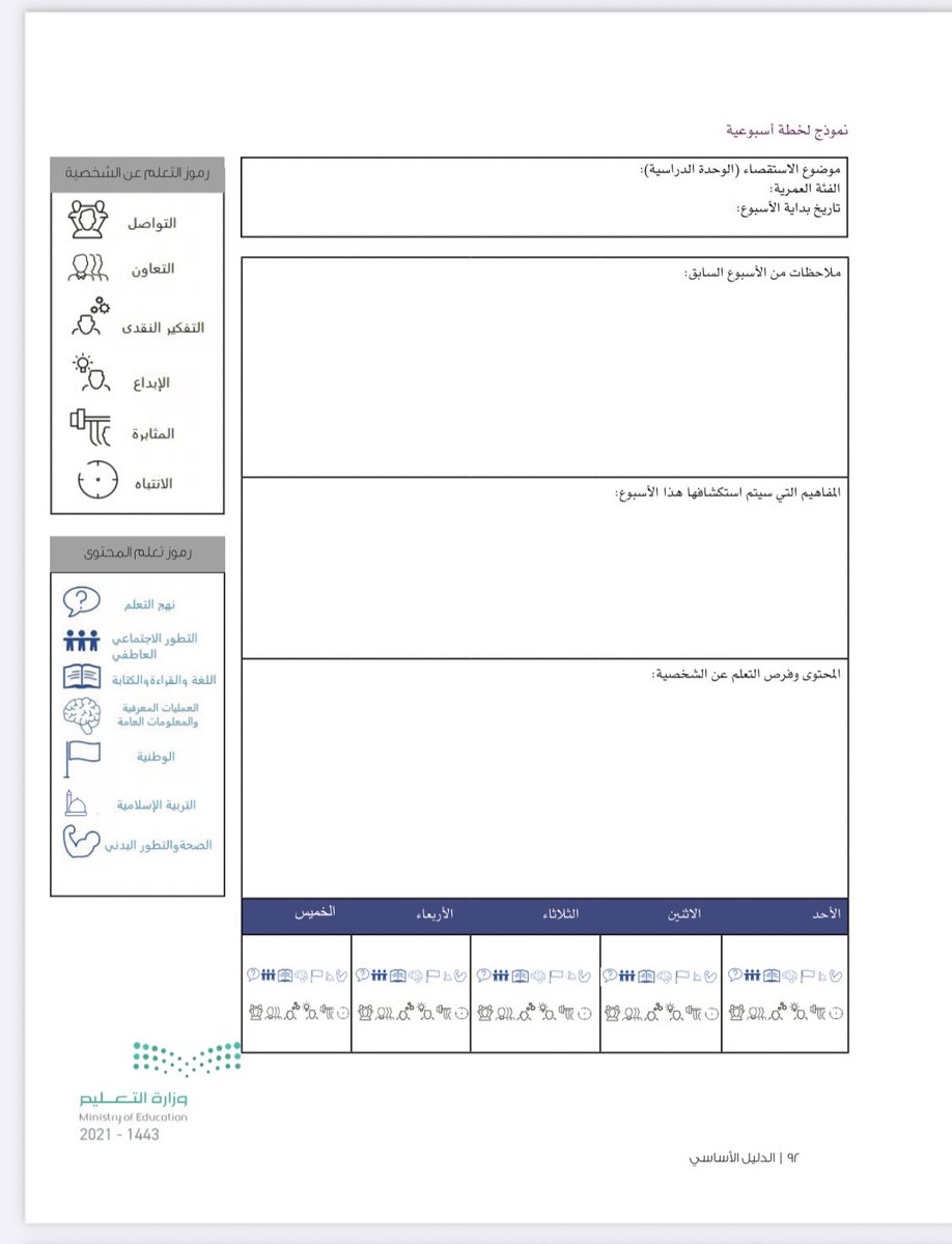 لابد على المعلمة الاطلاع على الادلة والوحدات وكلها موجودة في المنصة