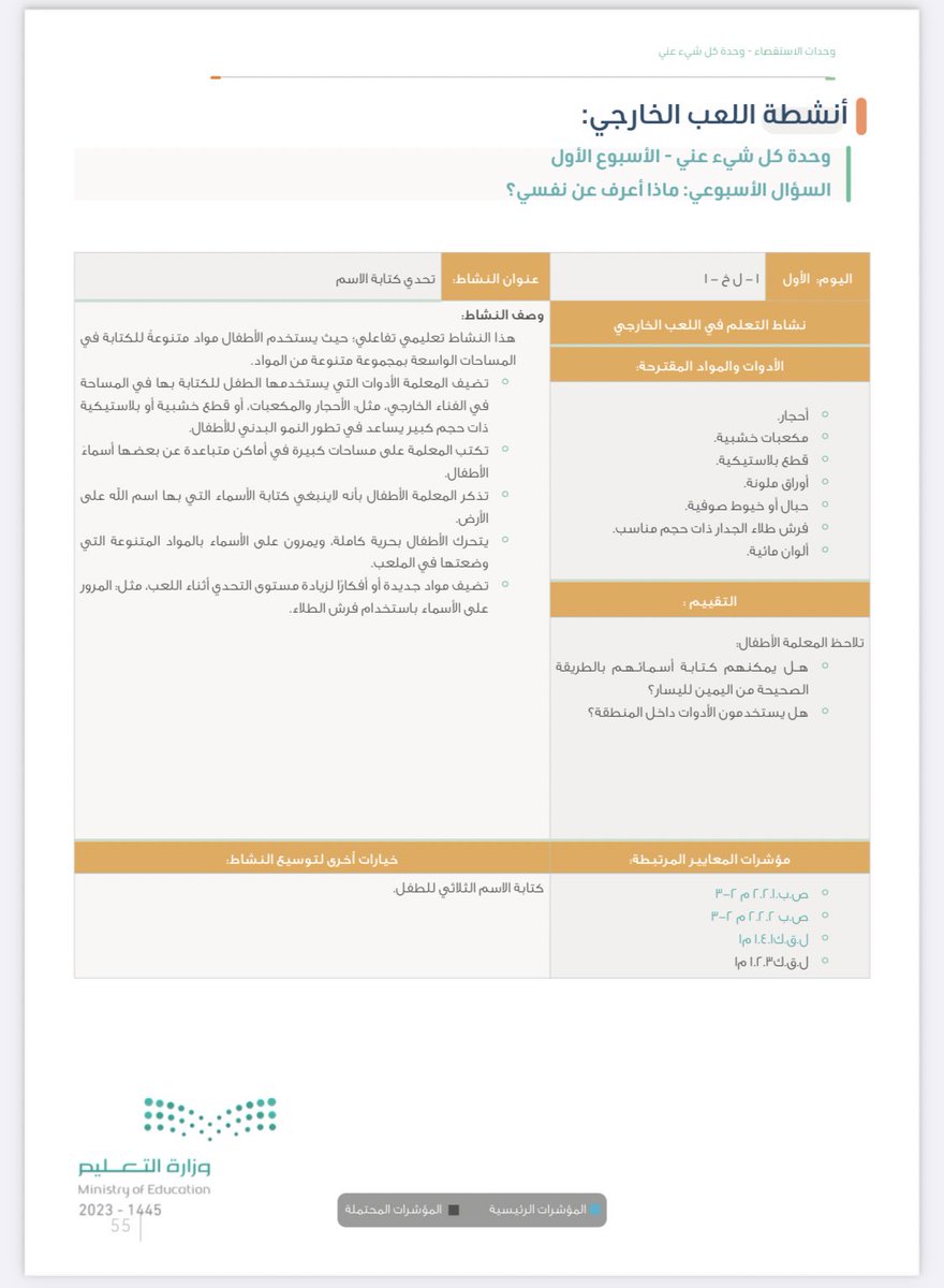 المواصلات)وحسب ماورد هذي الوحدات تكون مفاتيح لانشاء وحدات اخرى نابعه من اهتمامات الاطفال