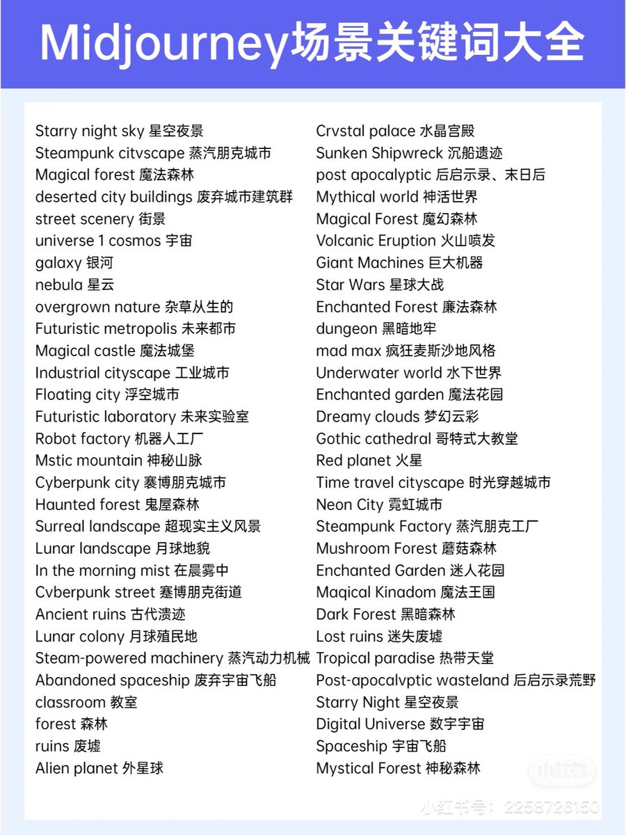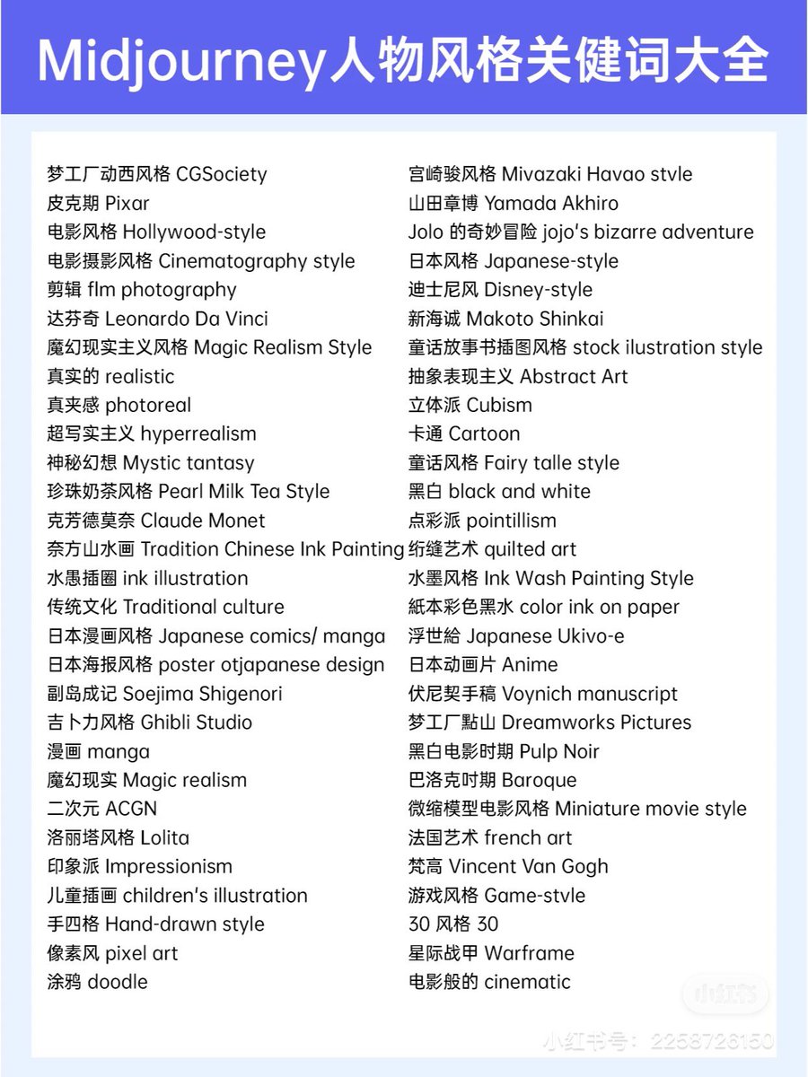找了一份,Midjourney教程笔记,分享出来,省的大家到处找来找去,宝典里有图,每张图有对应的关键词。用起来很方便,