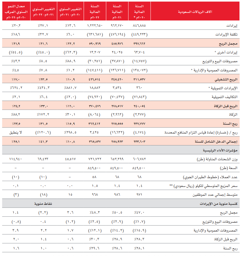 التزمت الشركة باستثمار ما يقارب من 1.5 مليار ريال سعودي لرفع مستوى عملياتها للمساعدة في تلبية النمو الكبير والمتوقع في الشحن الجوي خلال العشر سنوات القادمة والطلب على الخدمات المتخصصة ولديها خطة للنفقات الرأسمالية على المدى المتوسط بقيمة حوالي 906 مليون ريال.
