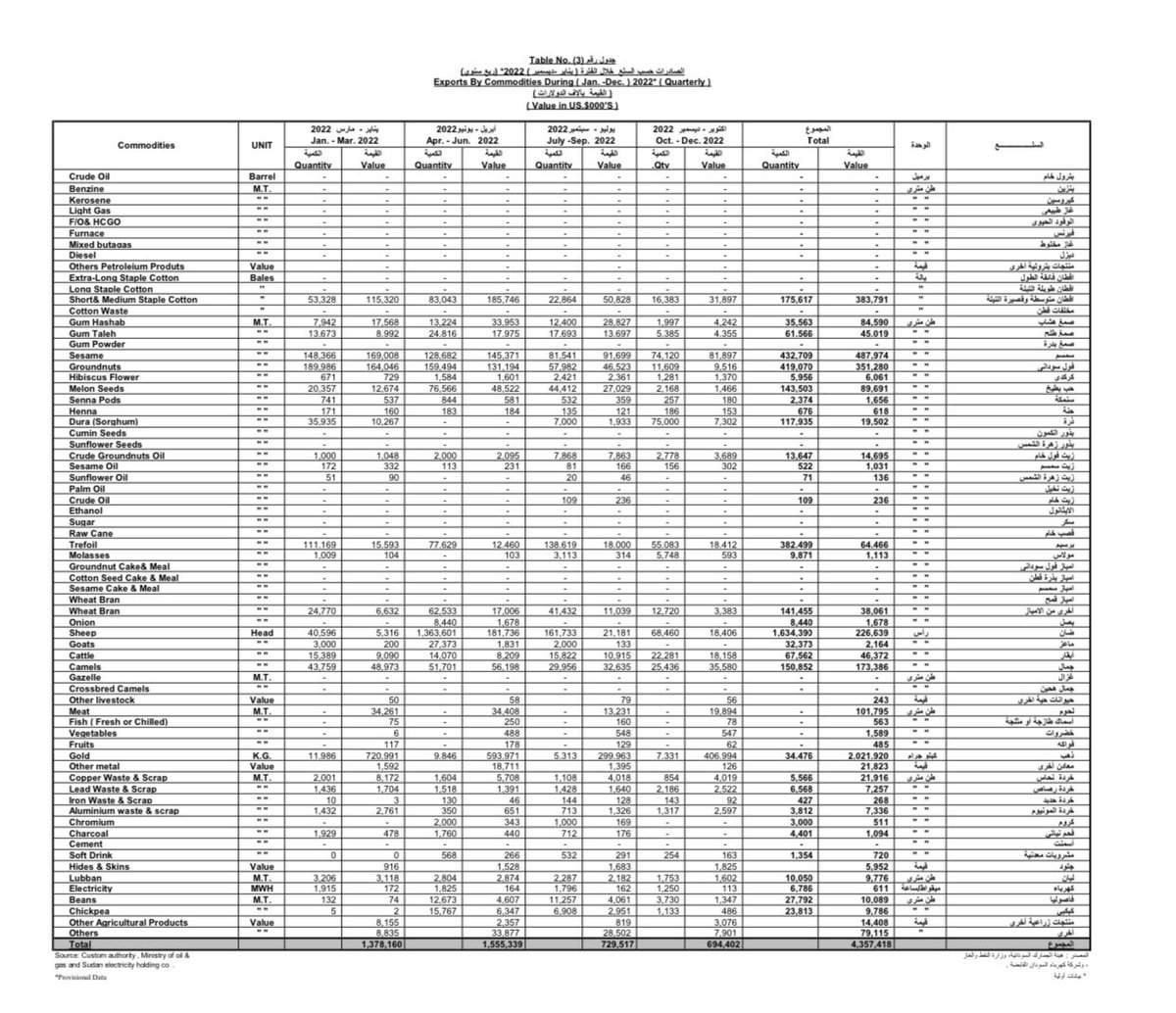 ولكن اذا اخدنا الفترةمن شهر ٤-٧ الربع الثاني و جزء من الثالث هل فعلاً حققنا صادرات اثناء الحرب؟ الاجابة لا طبعاً، والحرب دي حققت كارثة لانو السودان بعتمد اعتماد اساسي علي العائد من الصادر الذي لا يتجاوز ٥ مليار دولار ، بعجز في الميزان التجاري حوالي ٦ مليار