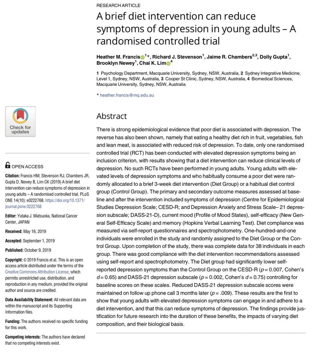 لأنه في العادة المصابين بالاكتئاب يتبعون نظام غذائي غير صحي كما أن الجهاز الهضمي يلعب دورًا هامًا في الصحة النفسية لإتصالة بالدماغ، على سبيل المثال حوالي 90٪ من السيروتونين و هي مادة كيميائية لها علاقة بالسعادة تصنع في القناة الهضمية بواسطة الميكروبات