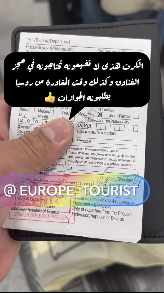 📌 ملاحظة: عند الوصول الى روسيا وبعد الجوازات بيعطيونك ورقة صغيرة فيها بينات الدخول احتفظ فيها هذى مهمة جدا بيطلبونها منك وقت الخروج من روسيا