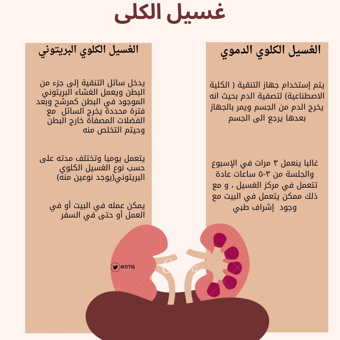 انواع الغسيل والفرق بينهم و الاحتياجات التغذوية لهم التغيرات اللي تصير ف النظام الغذائي بناء على تحاليل الدم اللي نطلبها و الارشادات العامه