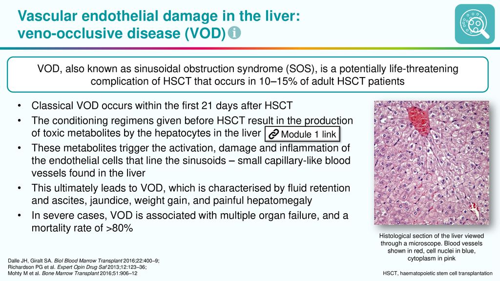 It can be a complication of high-dose chemotherapy given before a bone marrow transplantation and and has been described as part of a rare...