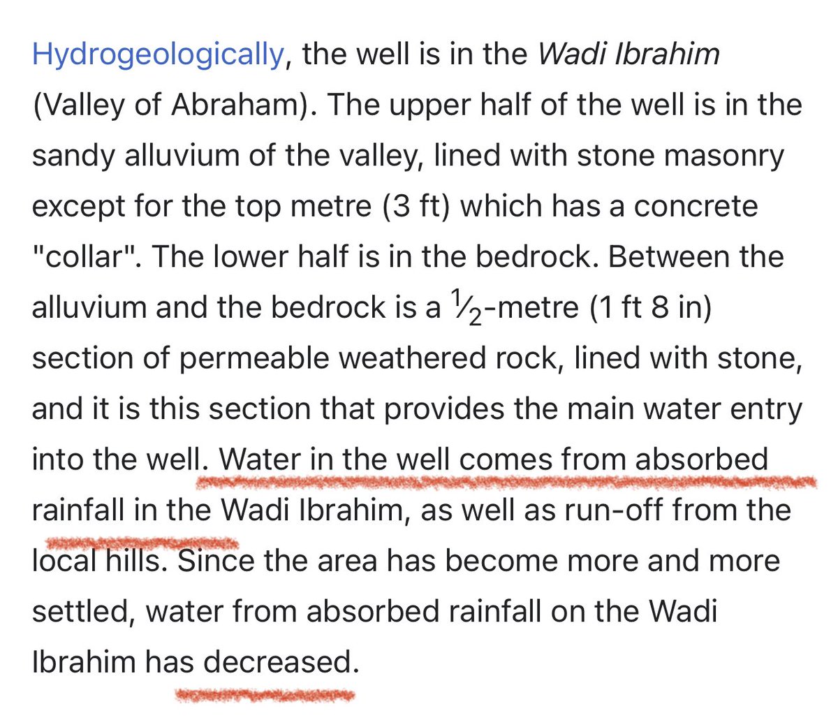 مشکل دیگهای که بود، اینه که آقاجان این چاهی که در طول تاریخ به زور میتونست به چندصد نفر آب بده، چطور با وجود کمتر شدن بارندگی، یهو آبش انقدر زیاد شد و سالی حدود ۵۰۰ هزار متر مکعب آب تحویل مسلمین میده؟