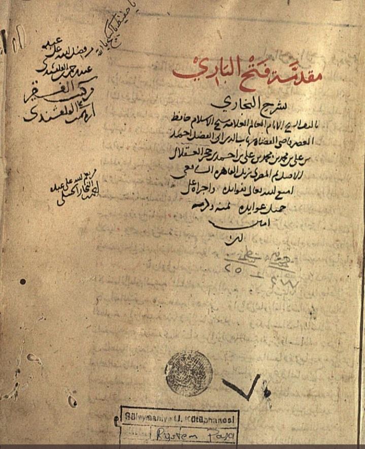 5- فنسخة شهيد علي نسخت سنة (٨٤٦هـ) ونسخة الظاهرية نسخت سنة (٨٥١هـ)، وهذا يدل على أن الحافظ لم يسم المقدمة في أول الأمر ثم سماها بعد ذلك، فهذا هو آخر الأمرين، ويؤيد ذلك أن النسخ التي نسخت قبل (٨٥١هـ) الاسم كتب في طرتها كما في نسخة شهيد على: «مقدمة فتح الباري».