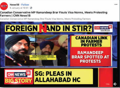 CNN-News18 faced criticism for withdrawing a news report that falsely implicated Toronto talk show host Joginder Bassi in funding farmers' protests with Khalistani links.