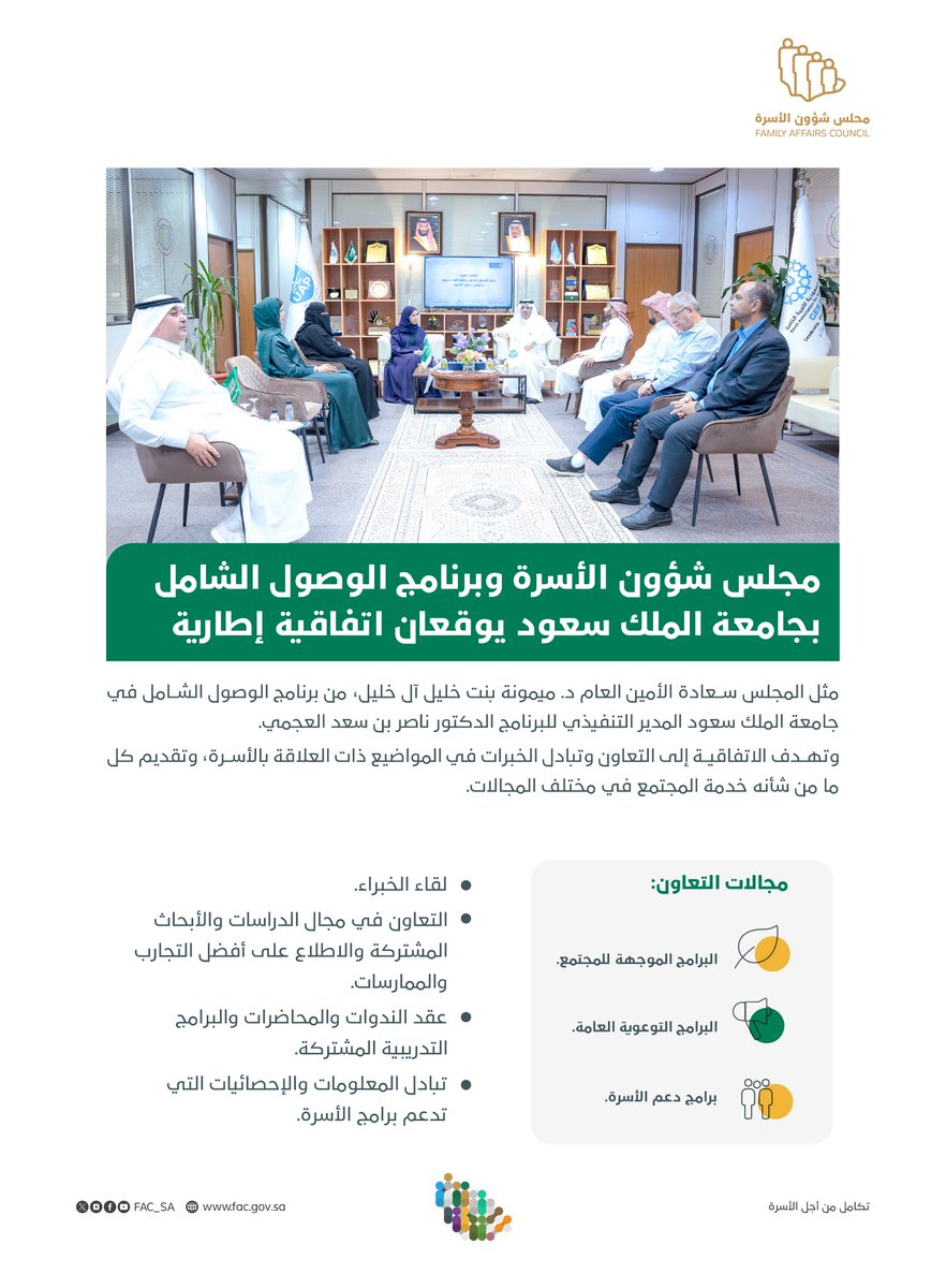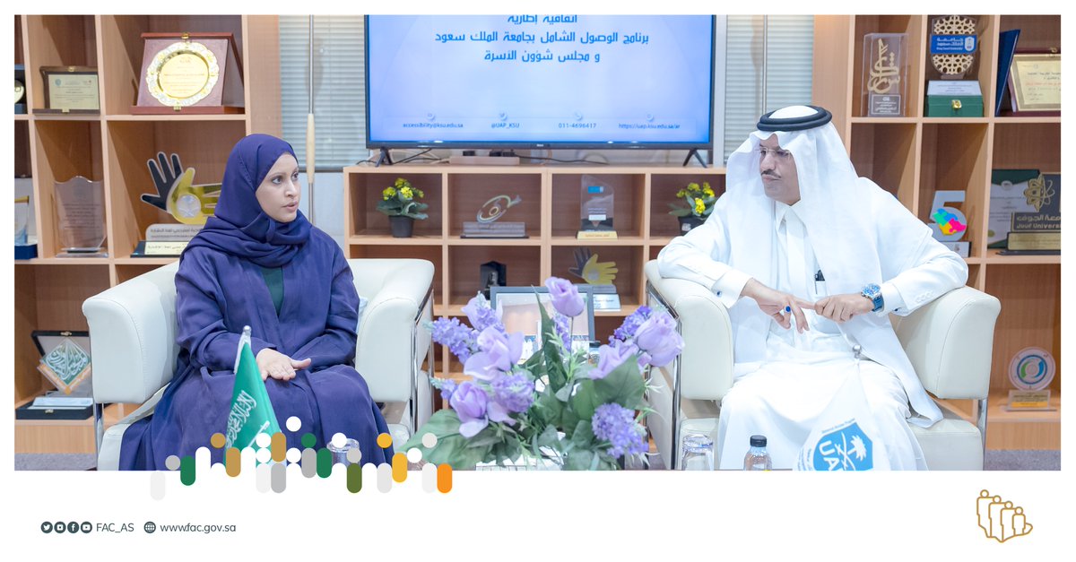 #خبر | بهدف تبادل الخبرات في المواضيع المشتركة، #مجلس_شؤون_الأسرة وبرنامج الوصول الشامل في جامعة الملك سعود @_KSU يوقعان اتفاقية إطارية.