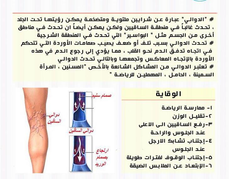 ويفضل مراجعة الطبيب من بداية ظهور الدوالي لعمل الاجراءات والفحوصات اللازمة ودمتم بخير وعافية