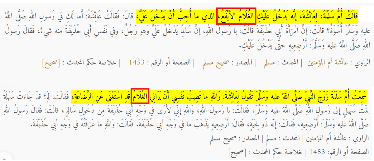 4⃣ أما حديث سهلة بنت سهيل فهو حكم خاص بسالم الذي قامت بتربيته في بيتها منذ طفولته لرفع الحرج عن دخوله عليها بعد البلوغ
