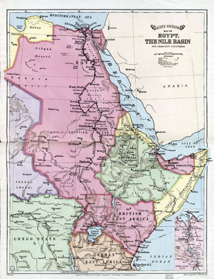 كما تطل على البحر الأبيض المتوسط والبحر الأحمر ويمر من خلالها خليج السويس ويحدها خليج العقبة ويمر من خلالها أطول انهار الكرة الأرضية (نهر النيل).