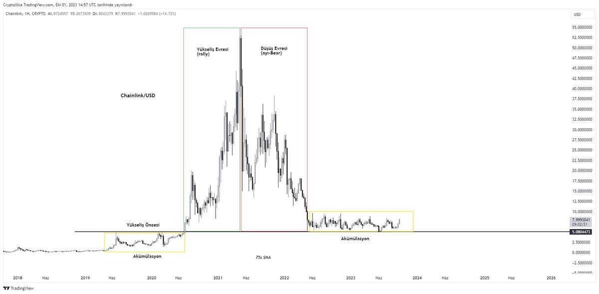 Ayı dönemindeki sert düşüşlerin ardından gelen ve kısmen daha yatayda testere şeklinde geçen sıkıcı, ky için kazanç olmayan bölge. Büyük yatırımcılar için ise düşük fiyatlardan piyasaya çok da fark ettirmeden mal toplanan yükseliş öncesi dönemdir. #btc