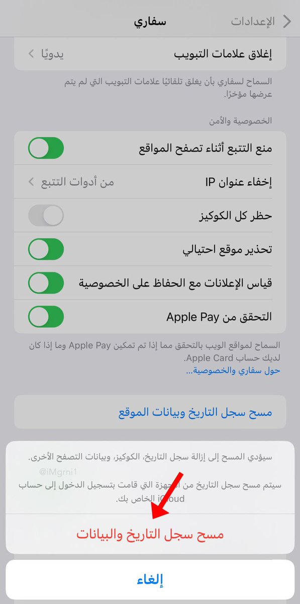 • اول خطوة نسويهم نروح لـ الاعدادت - سفاري - مسح سجل التاريخ وبيانات الموقع .. طبعًا ماراح يمسح الا المخلفات