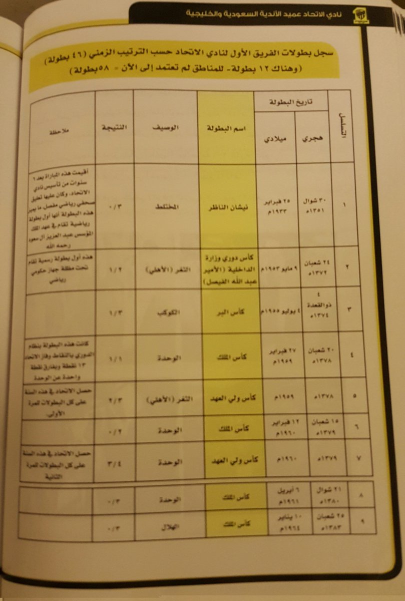 وهو كتاب احصائي لبطولات الاتحاد ونتائجه مع فريق الوحدة والأهلي والهلال والنصر (1)