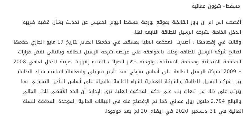 وتعتبر شركة "كهرباء الرسيل"التي كانت حكوميّة أول شركة يتم خصخصتها من الشركات والمؤسسات الحكوميّة في #عُمان ولصالح شركة هيثم بن طارق ومشاركيه في "أس أم أن باور" سنة 2006م، هؤلاء الذين لا تعجبهم الخصخصة ويوالون هيثم عليهم أن يتداركوا مواقفهم أو تصريحاتهم.وهذه الشركة مشهورة بالفساد