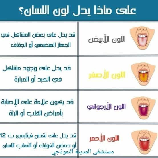 وعند ملاحظة اي تغير في لون اللسان يفضل مراجعة الطبيب للإطمئنان على صحتك ودمتم بخير وعافية
