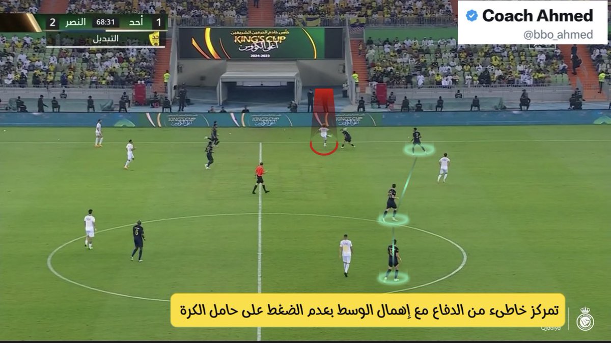 4️⃣ ثلاثي الوسط يجب الجدية على حامل الكرة خصوصًا في وسط الملعب اصبحت الخصوم تصنع اللعب الطويل من منتصف الملعب بسبب ضعف الرقابة👌