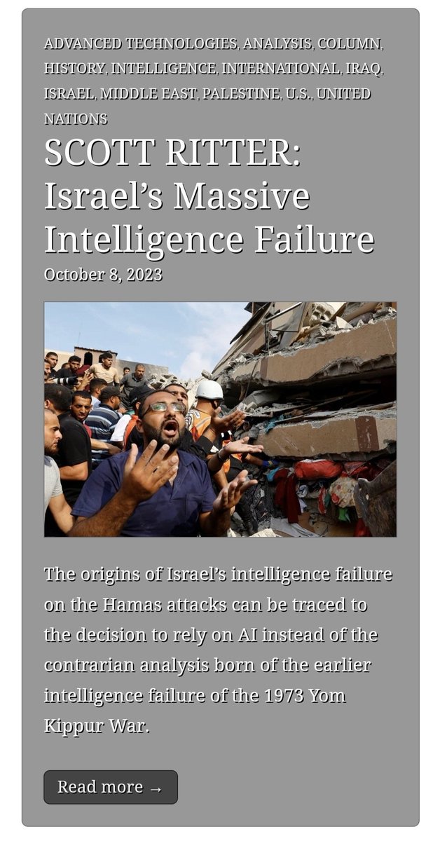 أنه من أبرز أخطاء #الاستخبارات الإسرائيلية، في عدم القدرة على التنبؤ بهجوم منظمة حماس، هو التباهي بتقنيات #الذكاء_الاصطناعي.