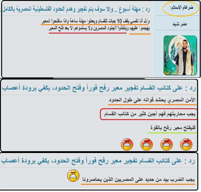 وكانت الوية الناصر صلاح الدين وكتائب القسام تهدد بتفجير الحدود المصريه !!!!