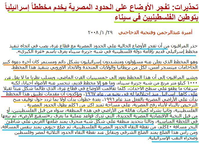 الم يكن الهدف منه سلخ جزء من سيناء لصالح توطين اهالى غزة ))