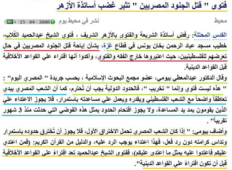 نعم اسر جنود مصريين فلم تكن فتوى قتل الجنود المصريين قد صدرت بعد الا انها بعد اشهر صدرت لهم