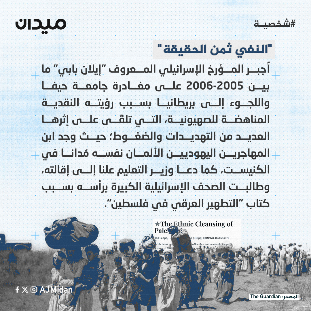يعدُ المؤرخ اليهودي إيلان بابي، أحد الشخصيات البارزة في سماء الأكاديمية العالمية التي انتقدت الصهيونية في العالم، والتي أظهرت حقَّ الفلسطينيين في أرضهم التي سلبت منهم جراء مجموعة من الأساطير التي سوق لها على أنها أفكار علمية، فمن هو البروفيسور البروفيسور إيلان بابي، وما هي أفكاره؟