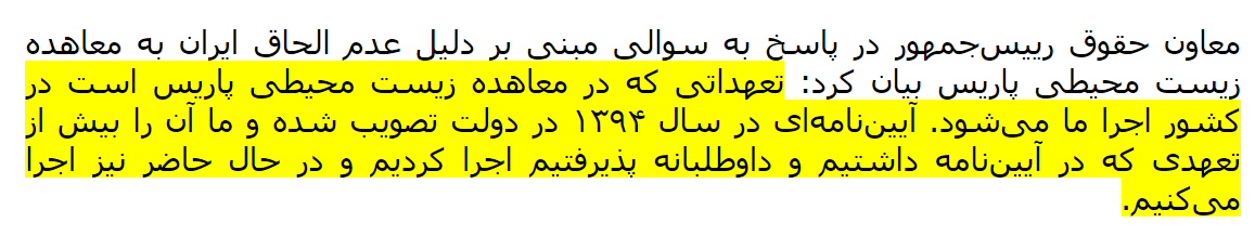 ما رسماً عضو توافق پاریس نیستیم، اما عملاً مشغول تهیهء NDC هستیم!