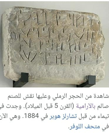 شاهدة من الحجر الرملي وعليها نقش للصنم صالم بالآرامية (القرن 5 قبل الميلاد). وجدت في تيماء من قبل تشارلز هوبر في 1884. وهي الآن في متحف اللوفر.