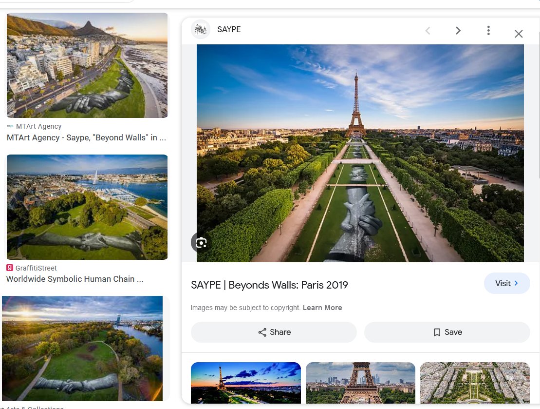 Guillaume Legros is known under the pseudonym Saype, which is formed from the contraction of "say" and "peace", two words he used in graffiti from an early age..