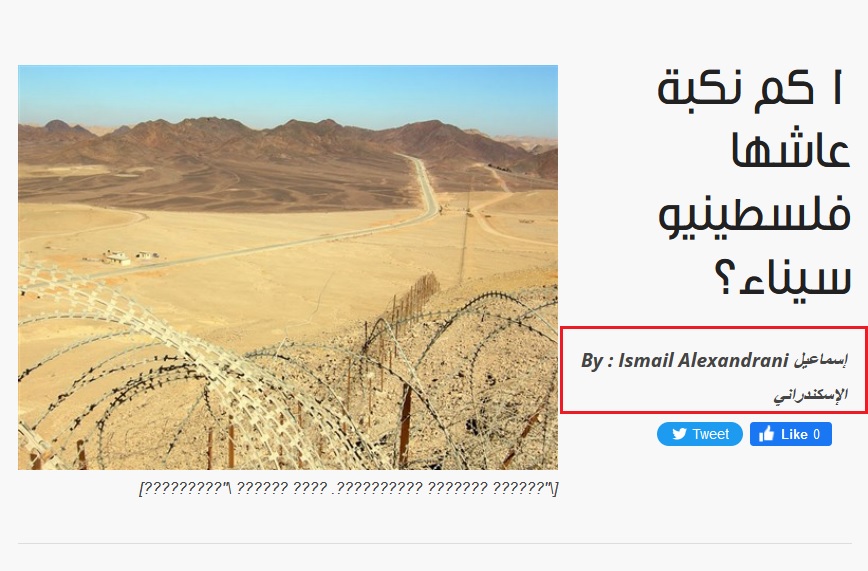 منها مثلا مقالة نشرها 12-10-2023 على موقع للزفتجية اسمه "المنصة" عنوانه فاضحه " لأن الطريق من الأزهر إلى غزة يمر بسيناء!"