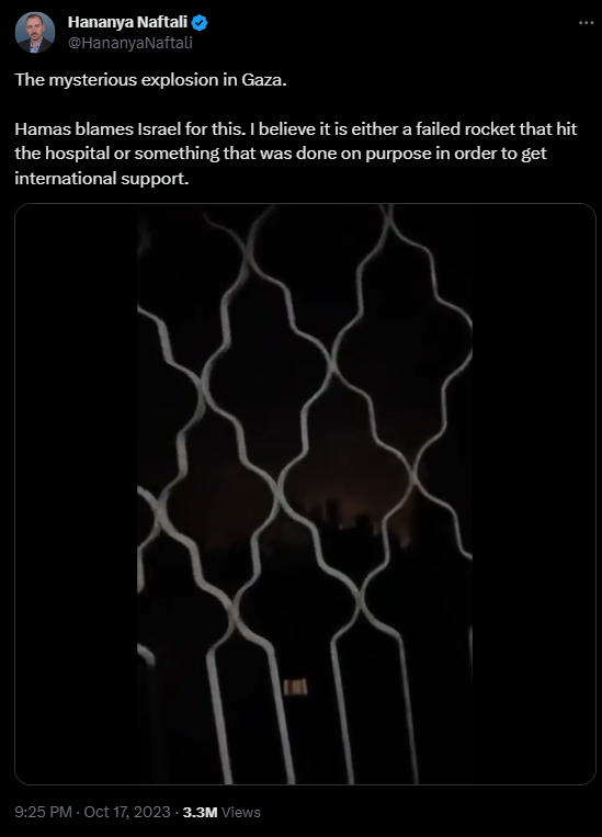 - Final thoughts: There were no secondary explosions. Hamas might have been hiding in the hospital, but it wasn't a weapons/rocket store.