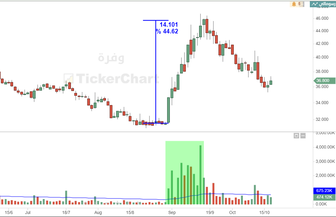 مثلا سهم خلال 3 أيام إرتفع سعره 14% بينما آخر إرتفع سعره 7% خلال نفس الفترة