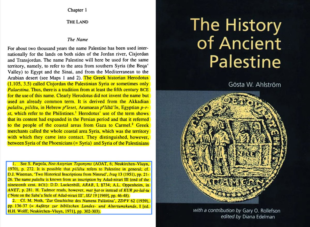 الإسم و من الواضح أن هيرودوت لم يخترع الإسم و لكنه إستخدم مصطلحاً شائعاً بالفعل و هي مشتقة من الكلمة الأكادية palaštu ، pilištu ، و العبرية pleset ، و الآرامية plišta 'în ، و المصرية p-r-st و التي تشير إلى الفلسطينيين و يظهر إستخدام هيرودوت لهذا المصطلح أن محتواه قد أتسع في